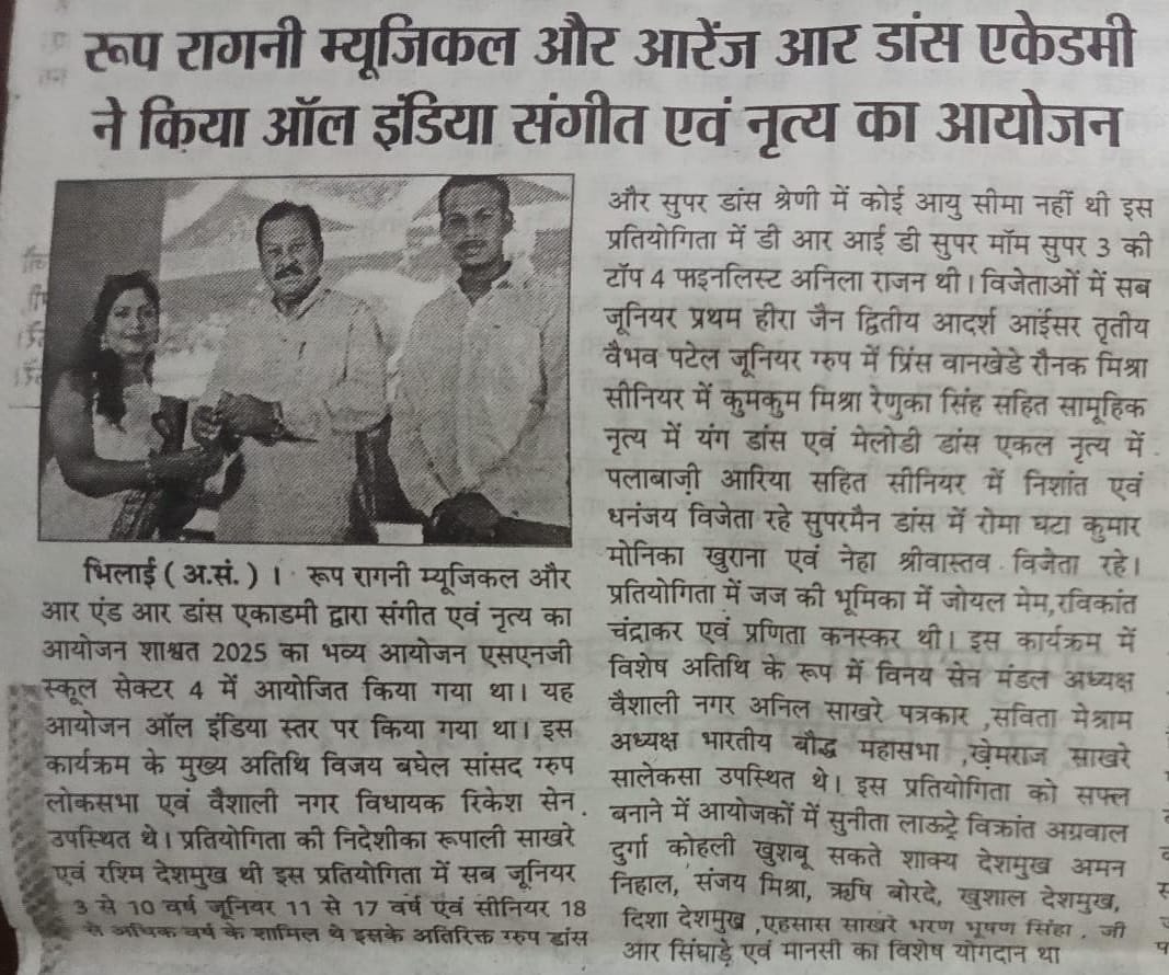 Miss Rupali Sakhare has a postgraduate degree in music from Khairagarh university and has completed diplomas in classical music and folk music tabla. The artist has received national and international awards and done more than 1000 shows all over the country. As a singer, she has performed at the international level as well as sung on many albums of CG hits. Currently she is working at Krishna Public School, Bhilai as a music teacher.